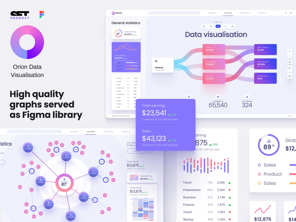Components-driven graphs design kit for dashboards, presentations, infographics & data visualisation. Includes 25+ charts types for all the viewports.