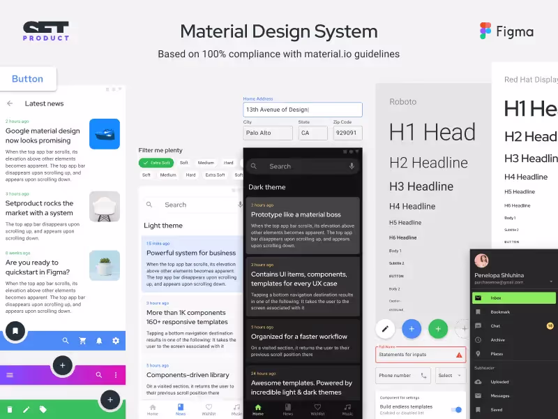 Figma library is based on 100% guidelines compliance with Material.io. Contains ready-to-use templates to accelerate app UI design.