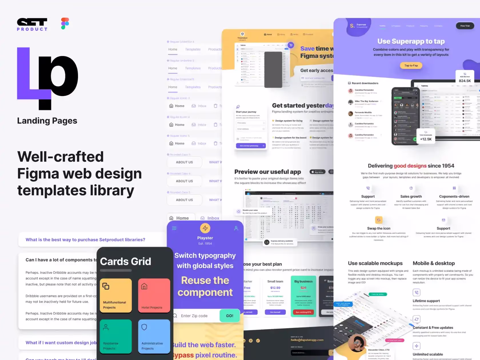 Create hassle-free landing pages in Figma. This kit is based on 10 landing page templates, powered by 1600+ variants for 630+ web blocks.