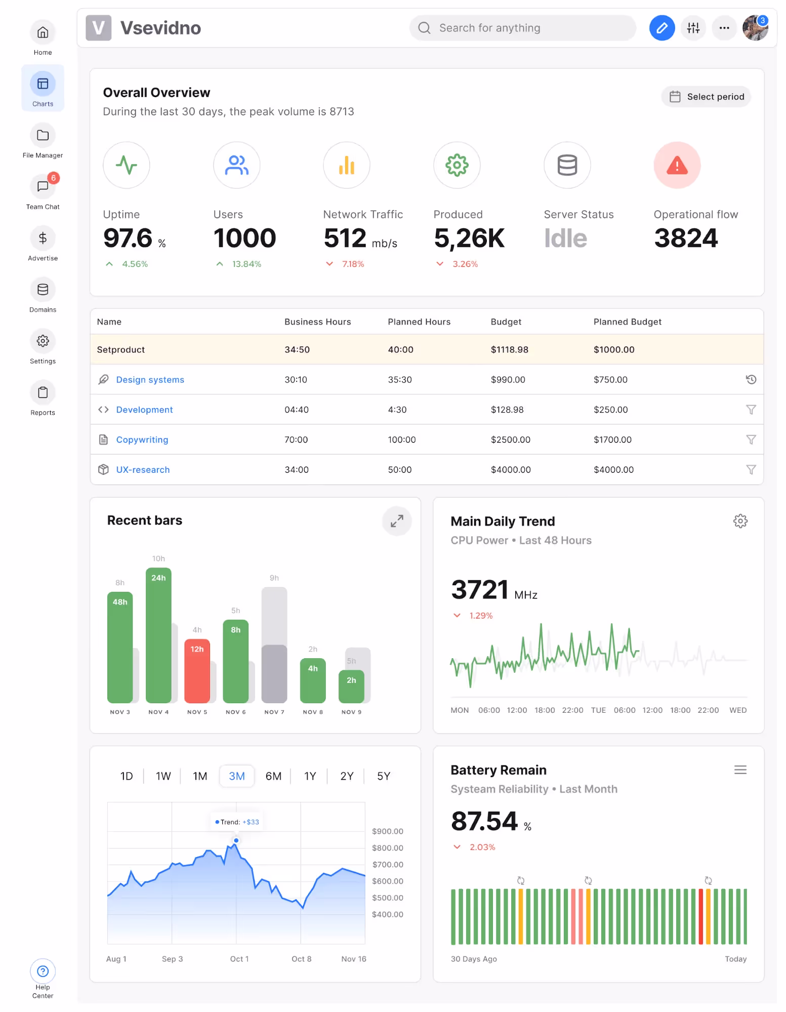 Throughout the dashboard template, maintain a consistent design philosophy of unifying common stylistic elements like color schemes, typography, iconography. Consistency in design means that visual identity can be coherently put together and that usability is enhanced by providing familiar cues and dashboard UX design patterns on which to rely. Moreover, being consistent helps in brand recognition by promoting what is already familiar; it also makes the dashboard look more professional.
