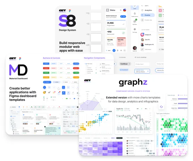 Recommended for every organisation. Included 10+ design systems: Material library, Dashboard kits, iOS & Android layouts, Charts library, Icons and many more...