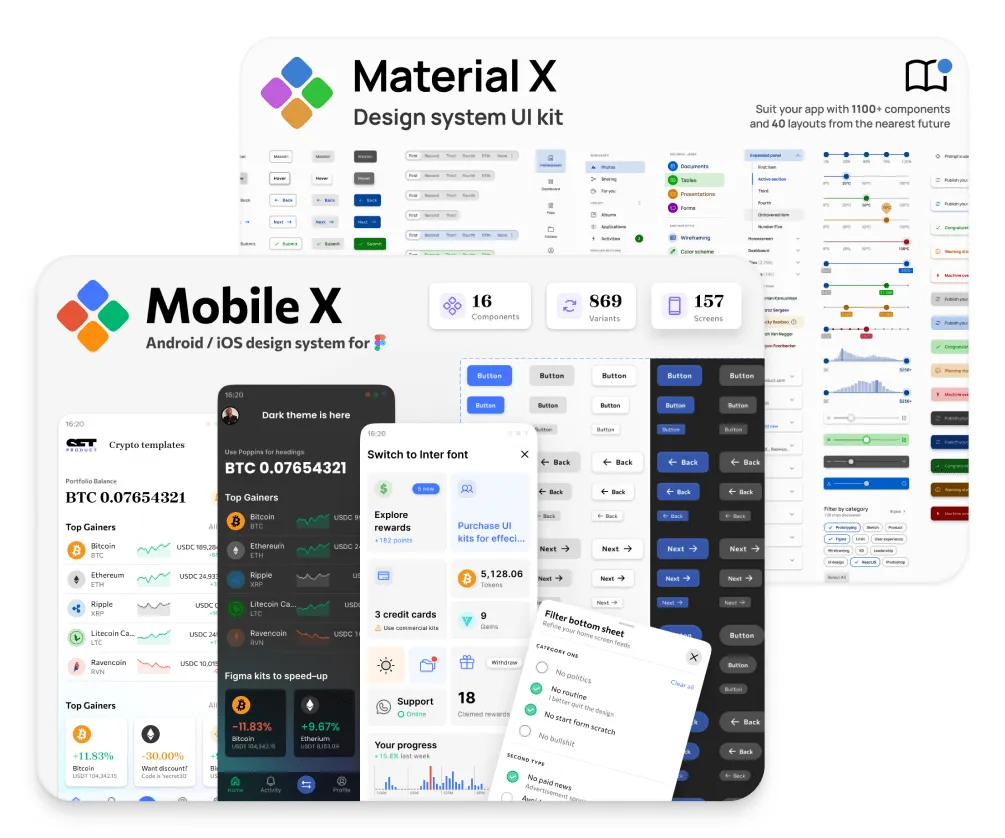 Included: Figma Material X kit + Mobile X UI kit