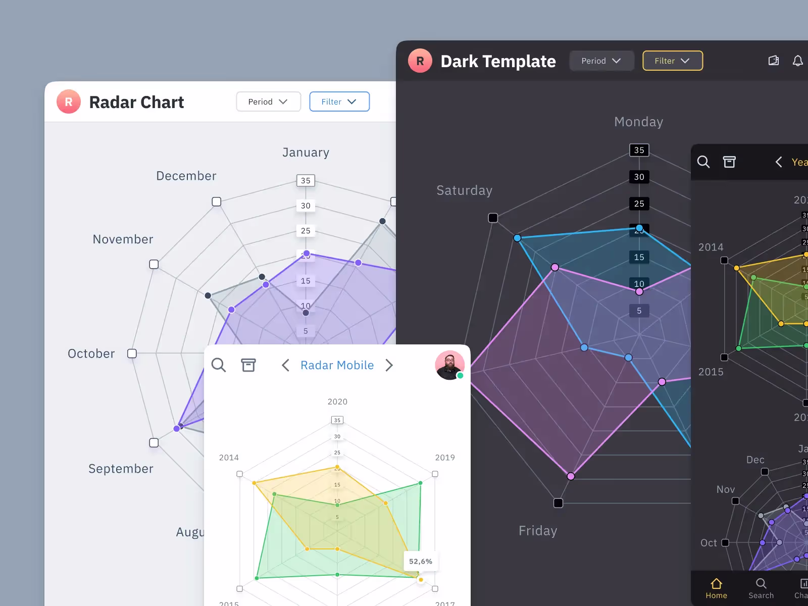 Save time and human resources by reusing hundreds of pre-made templates crafted by us. Based on top notch UX taken from the World's best apps.