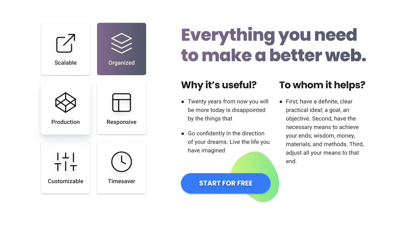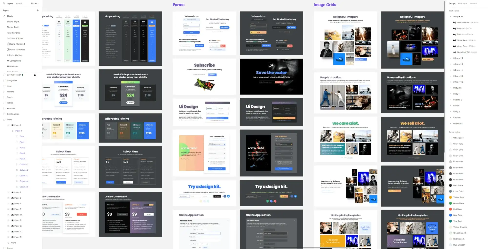 This web design library is properly named and organised. Blocks are easy to customise, adjust and fit together.