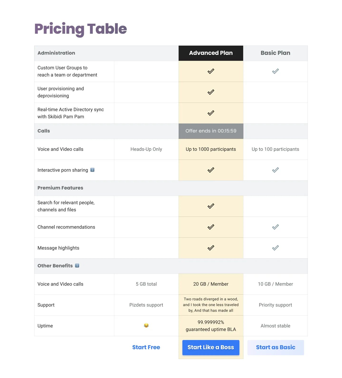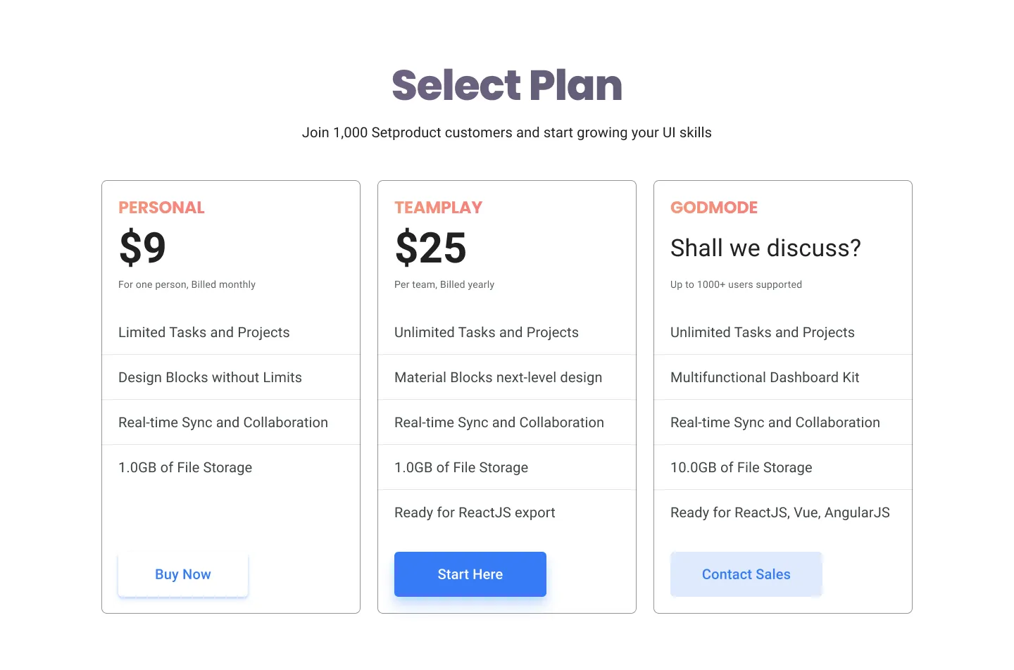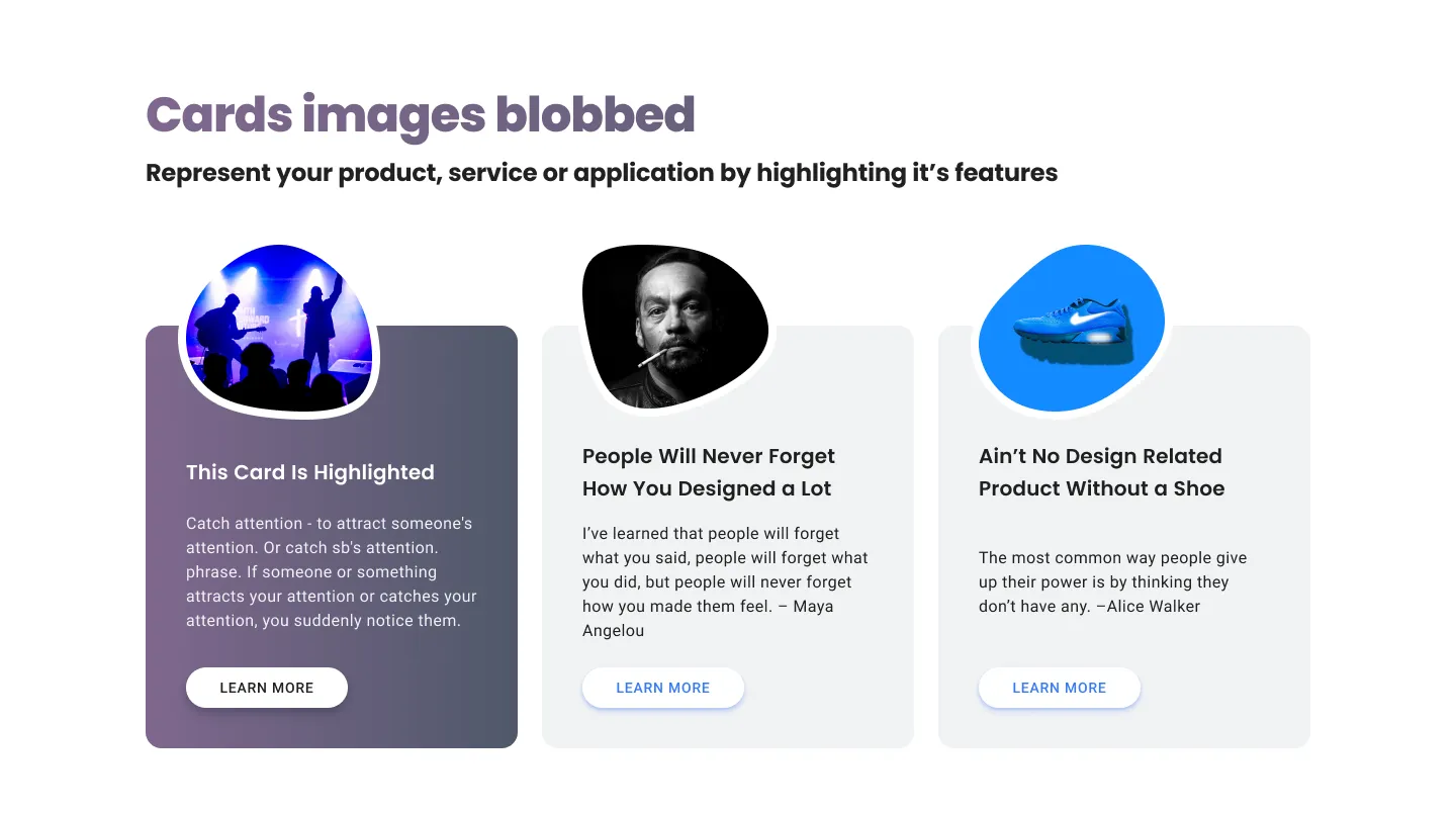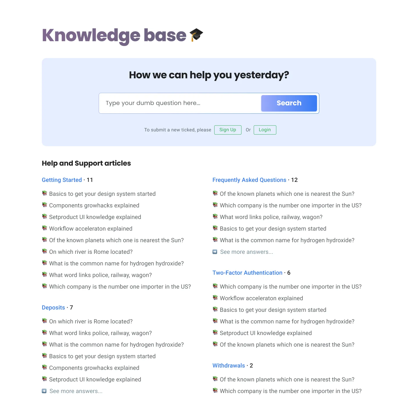 Hero covers, Navigation, Product features, Cards, Tables, Call to action, Pricing plans, Forms, Image grids, Testimonials, FAQ, Footers, Roadmap, Calculator, Code snippet and others.