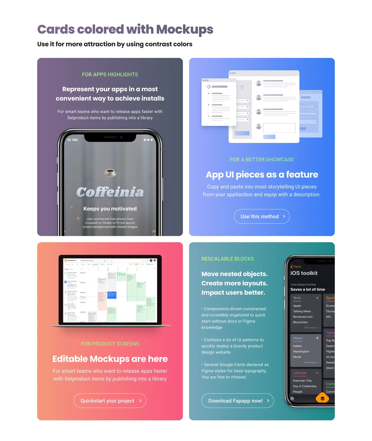 Landing pages reusable templates kit. 140+ dark & light constrained design blocks.