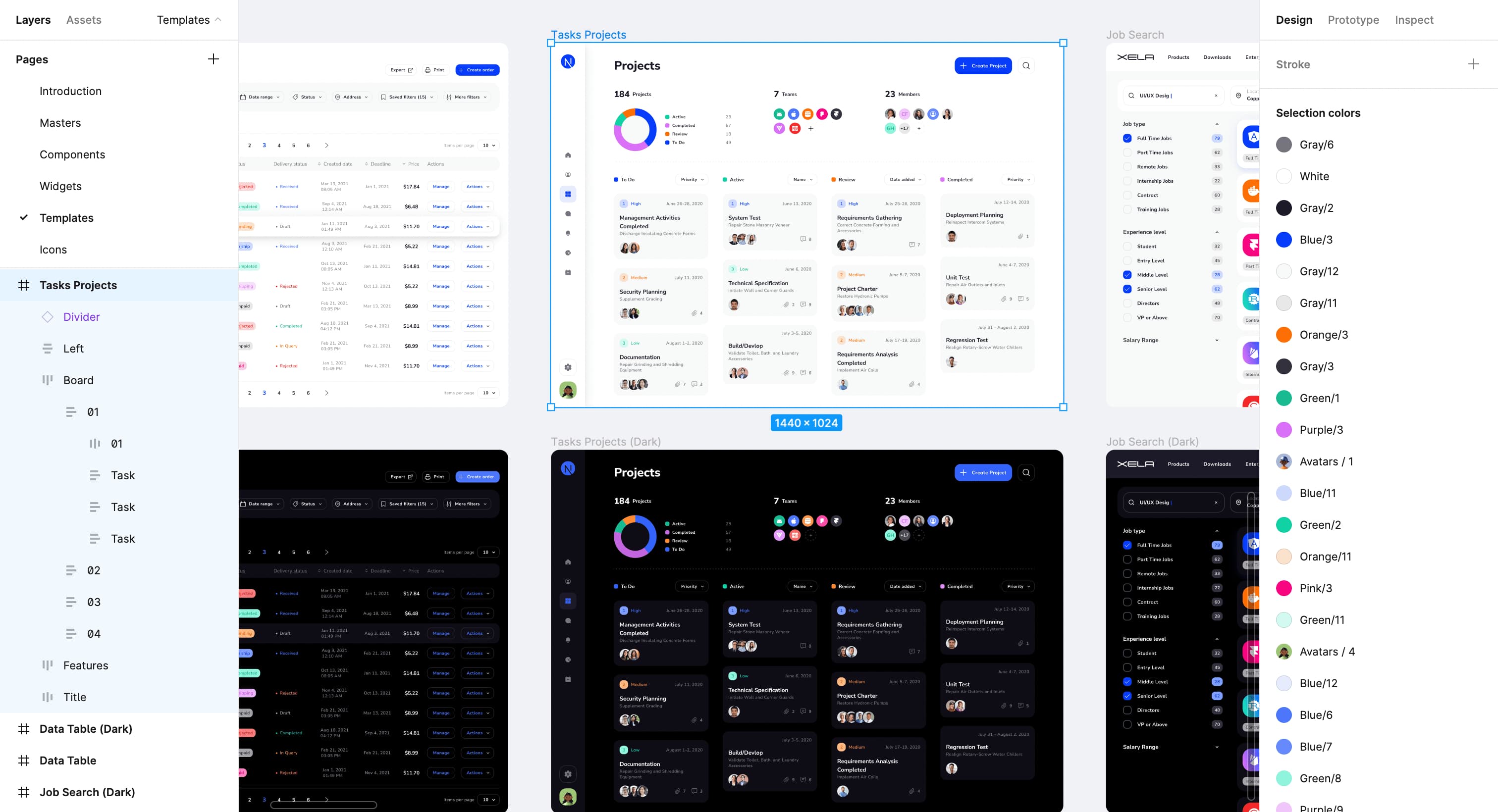 Customizable & adjustable dashboard design system with 50+ ready-to-use app layouts, 1900+ variants for 30 components with auto-layout.