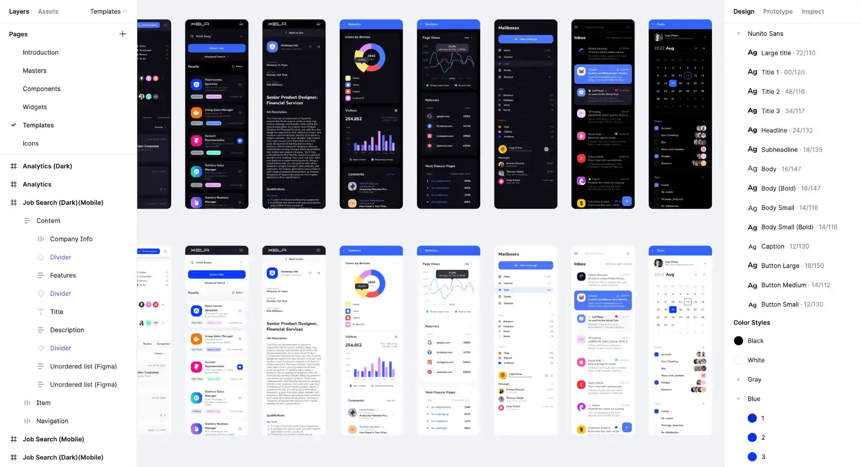 Customizable & adjustable dashboard design system with 50+ ready-to-use app layouts, 1900+ variants for 30 components with auto-layout.